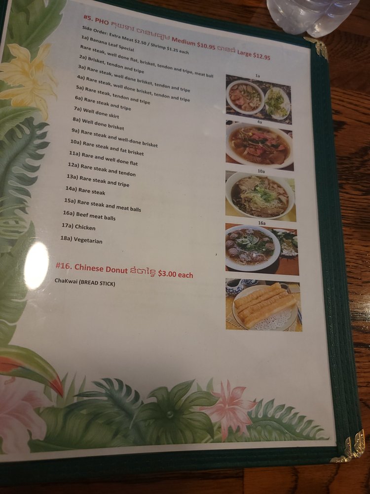 a) Banana Leaf Special: Rare steak, well done flat, brisket, tendon and tripe, meat ball a) Brisket, tendon and tripe a) Rare steak, well done brisket, tendon and tripe a) Rare steak, well done brisket a) Rare steak, tendon and tripe a) Rare steak and tripe a) Well done skirt steak a) Well done brisket a) Rare steak and well done brisket a) Rare steak and fat brisket a) Rare and well done flat a) Rare steak and tendon a) Rare steak and tripe a) Rare steak a) Rare steak and meat balls a) Beef meat balls a) Vegetarian